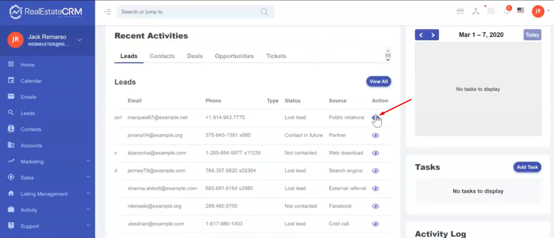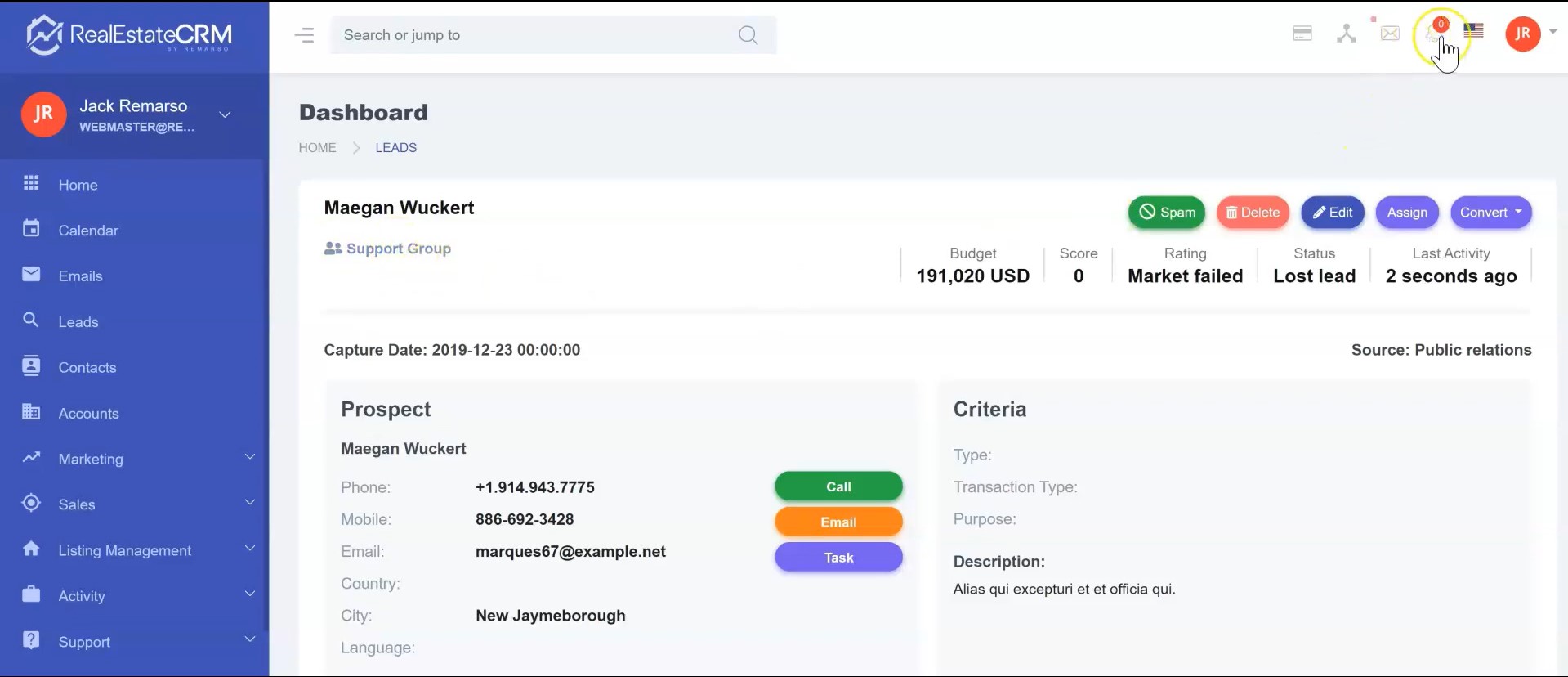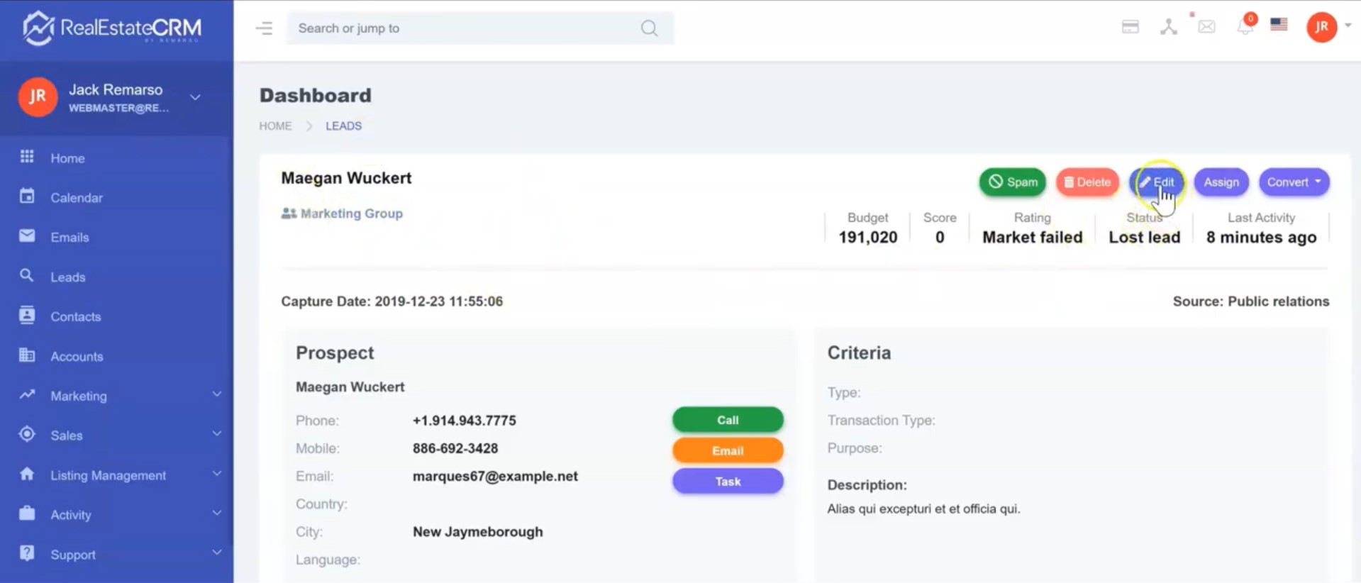 2. Click on the edit button to update/change the information about the Lead.