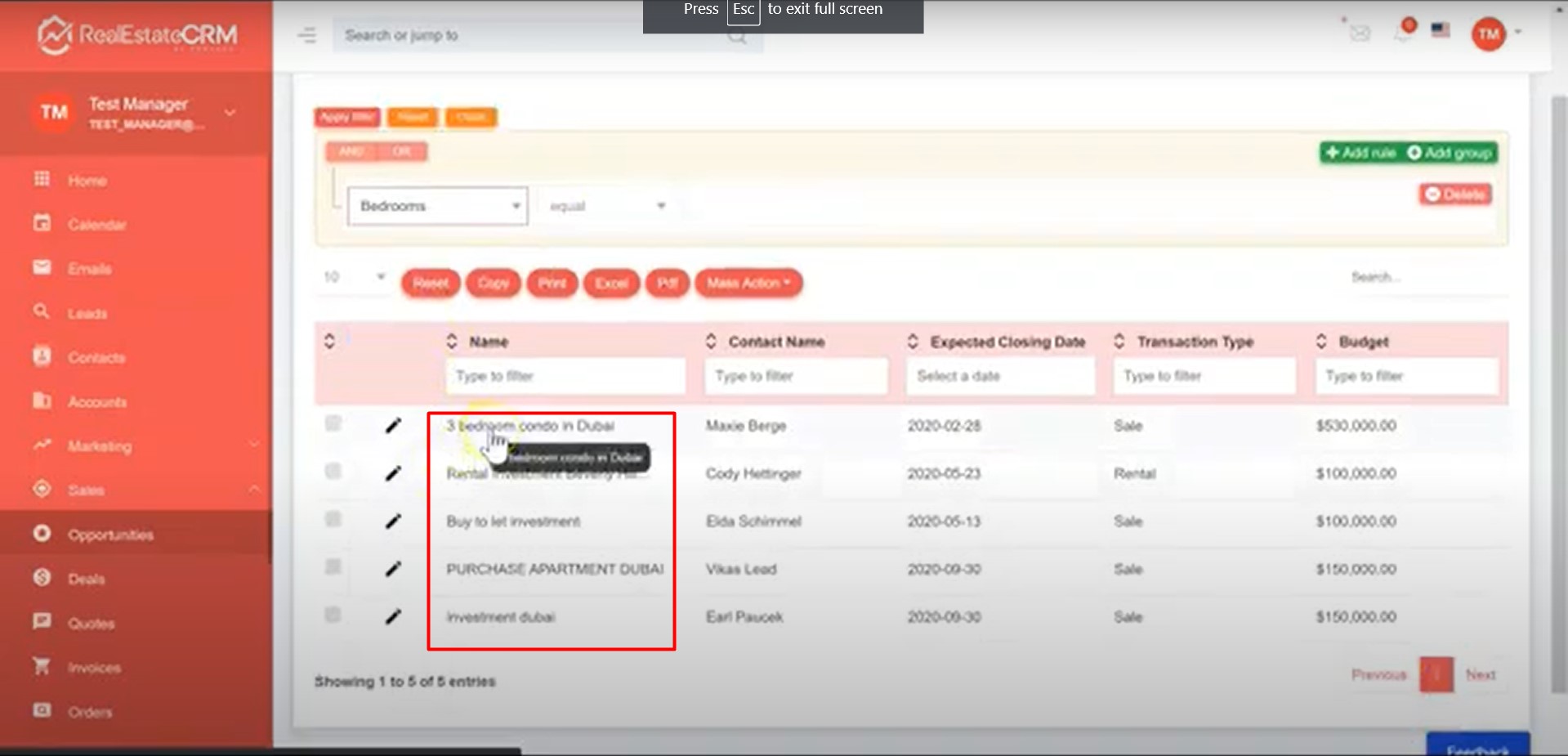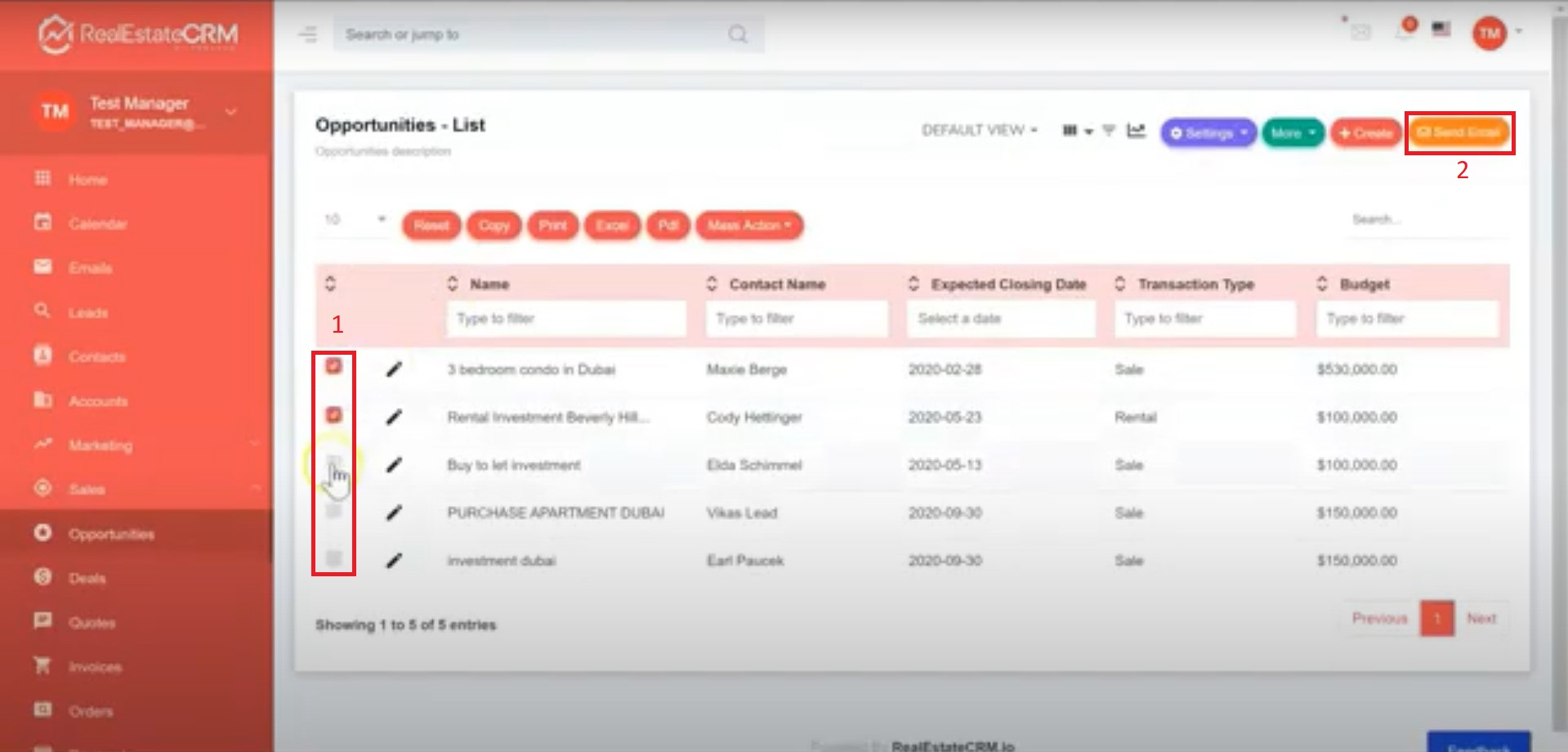 Sending Mass Email via Opportunities Filter