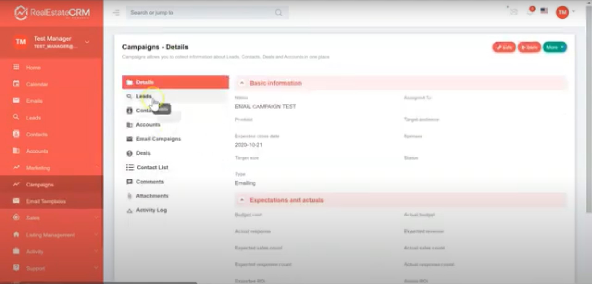 4. You can update the Campaign Leads, Contacts, Contact List by clicking their categories shown in the screenshot below.