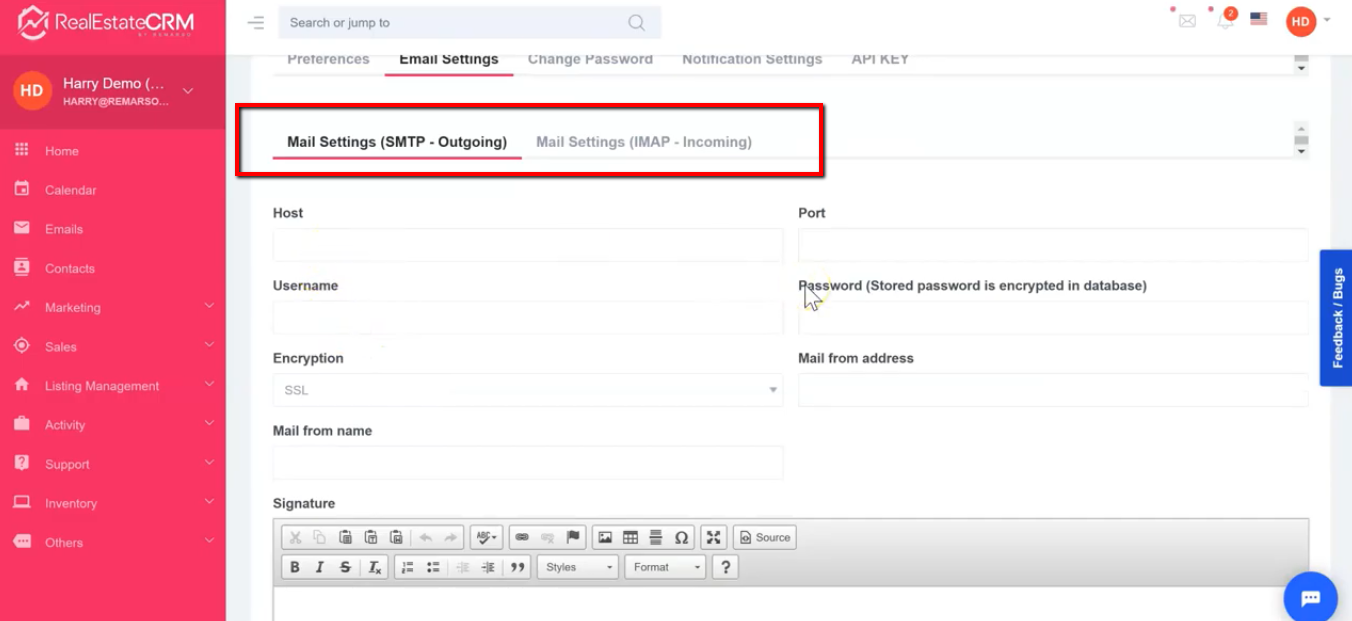 4. Under the “Email Settings” tab, you can setup your “SMTP – Outgoing” settings and “IMAP – Incoming” settings. Just fill up the needed details and don’t forget to save.