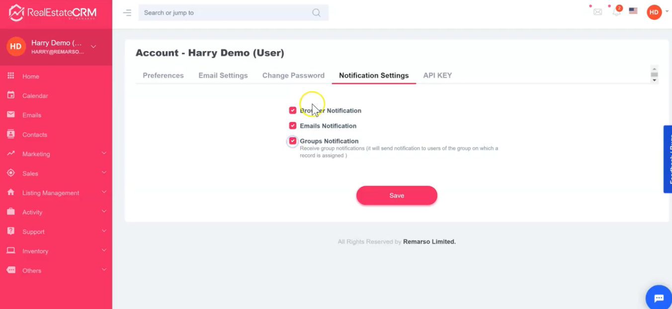 5. Under the “Notification Settings” tab, you can choose to receive browser notifications, email notifications and groups notifications from the system. Don’t forget to save.