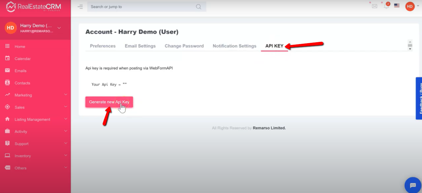 5. You can generate the API Key under the “API KEY” tab. Just click the button, copy the API Key and you’re good to go.