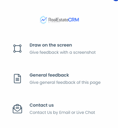 When you are logged into your realestatecrm.io account, click on Feedback on the bottom right